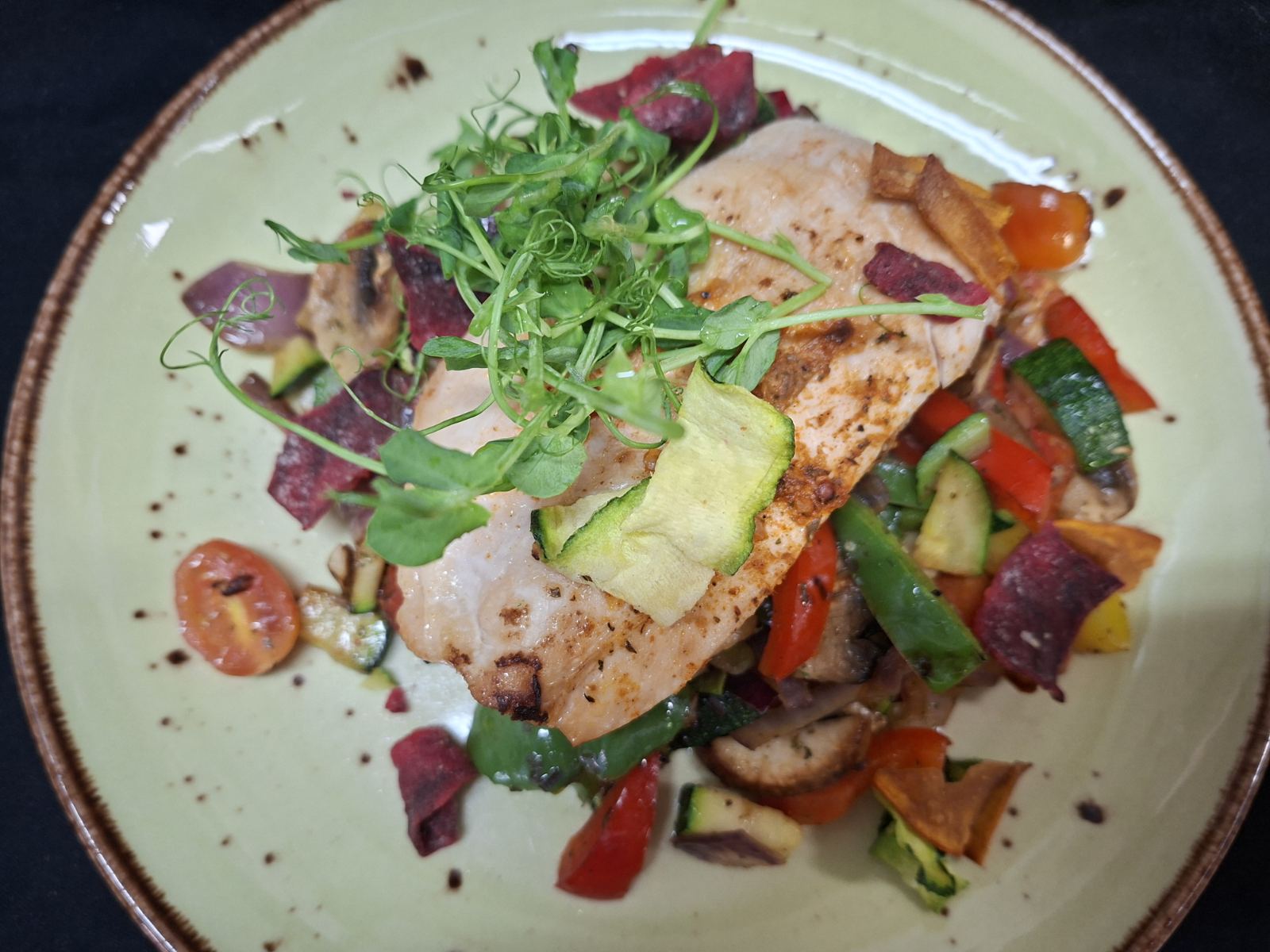 4. Špeciál – 350g Kurací steak na grilovanej zelenine
